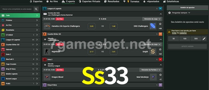 O Ss33 oferece uma grande seleção de opções de apostas em e-sports com probabilidades competitivas